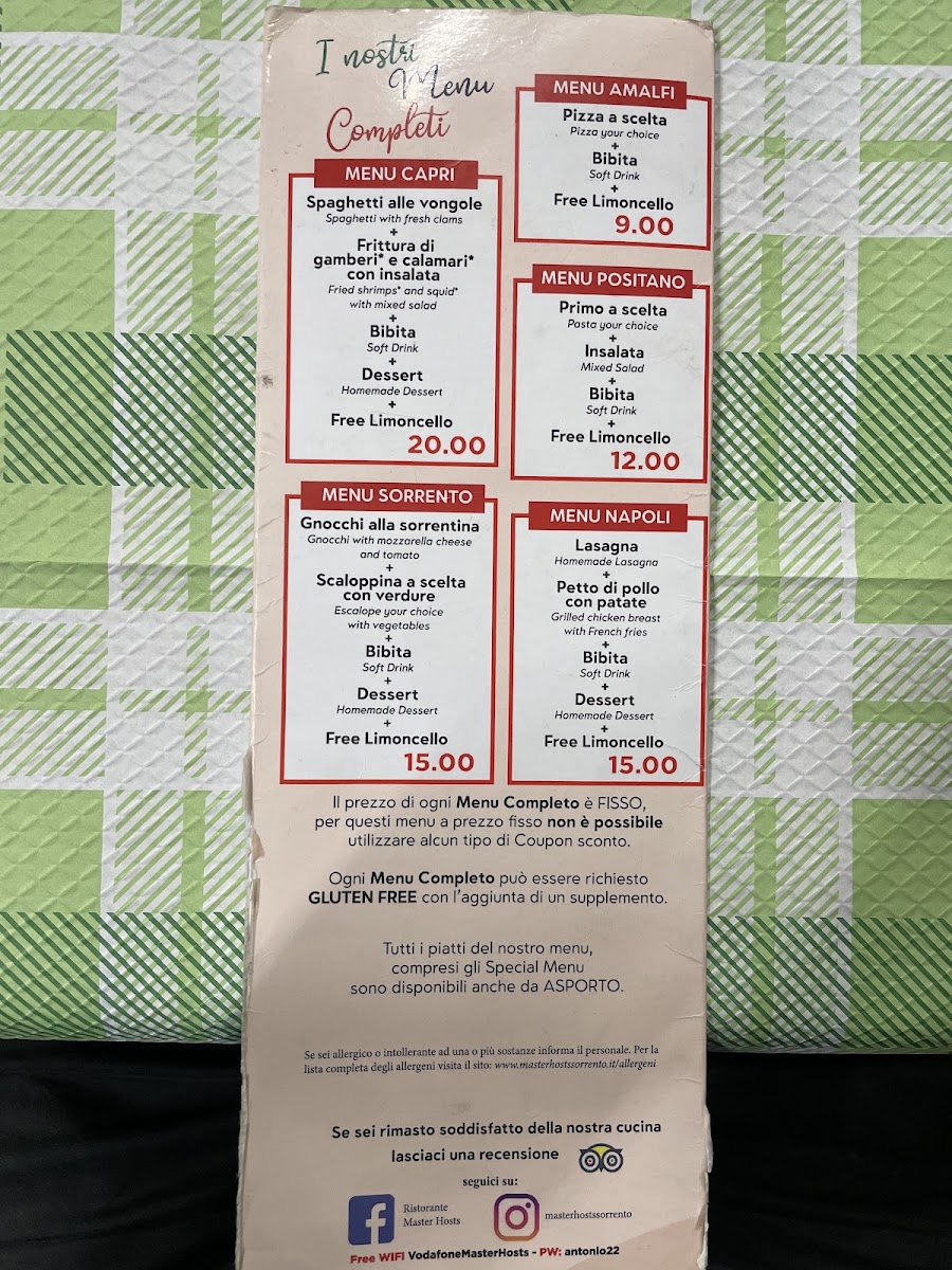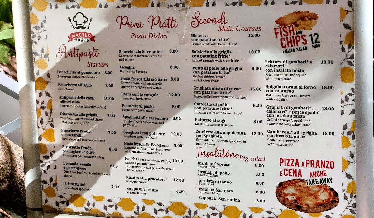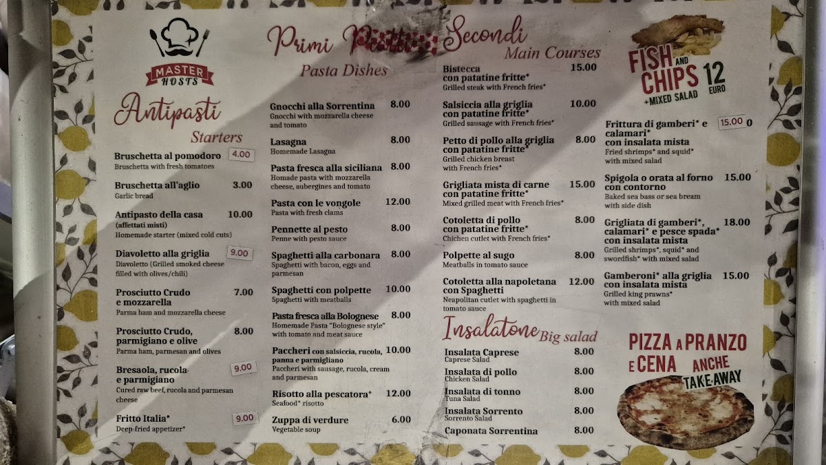 Welcome to Master Hosts, a culinary gem nestled in the heart of Sorrento on Corso Italia. This charming restaurant has garnered rave reviews for its exceptional food quality and unbeatable prices. Guests consistently praise the warm, family-like atmosphere and the passionate service provided by owner Antonio, who ensures every visit feels special.